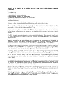 Address_Opening Second Session South African Algerian Bi National Commission_17 10 2001