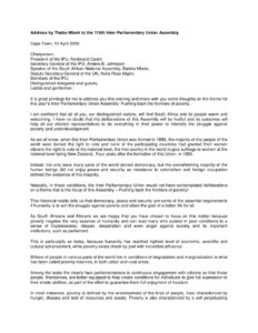 Address_Thabo Mbeki_Inter Parliamentary Union_Pushing Back Poverty_13 04 2008