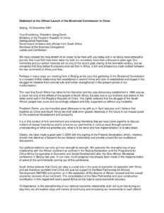 Statement_President Jiang Zemin_Official Launch Binational Commission China South Africa_10 12 2001