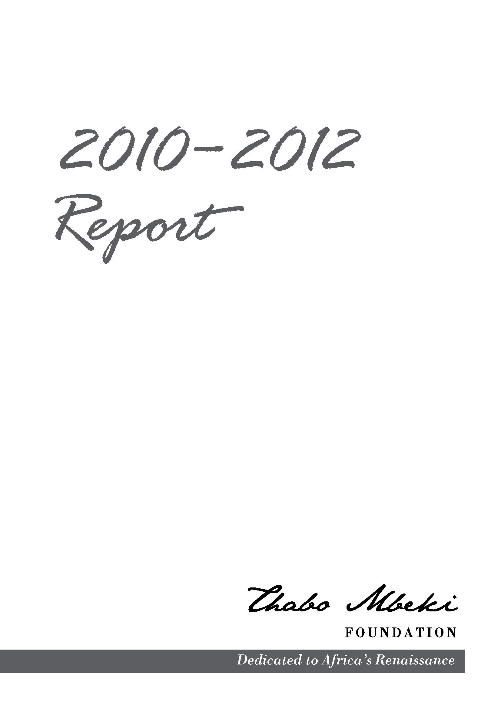 We are honoured to present this first Report of the Thabo Mbeki Foundation (TMF) and the Thabo Mbeki African Leadership Institute (TMALI). The Report covers the period from the Launch of both organisations in October 2010 to the end of the TMF Financial Year in February 2012 – essentially our Founding Years.